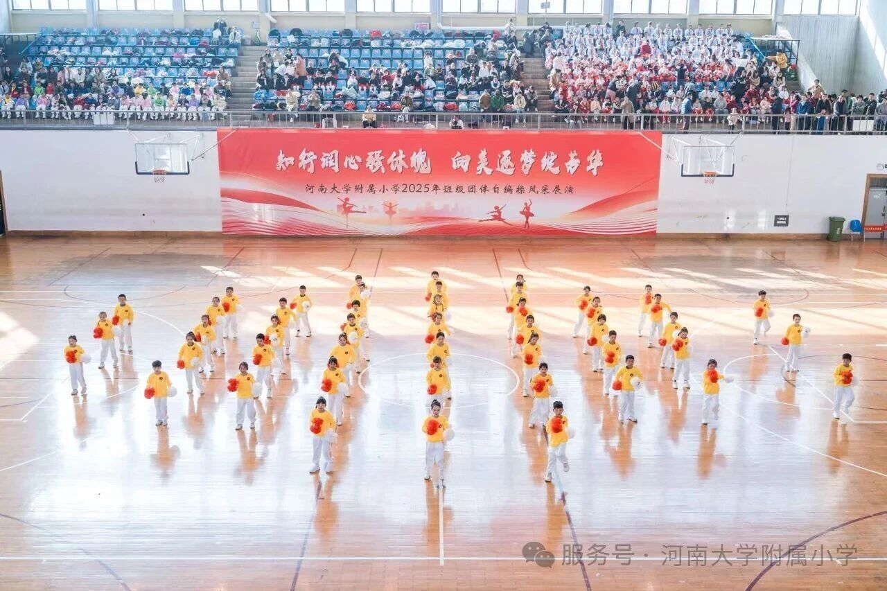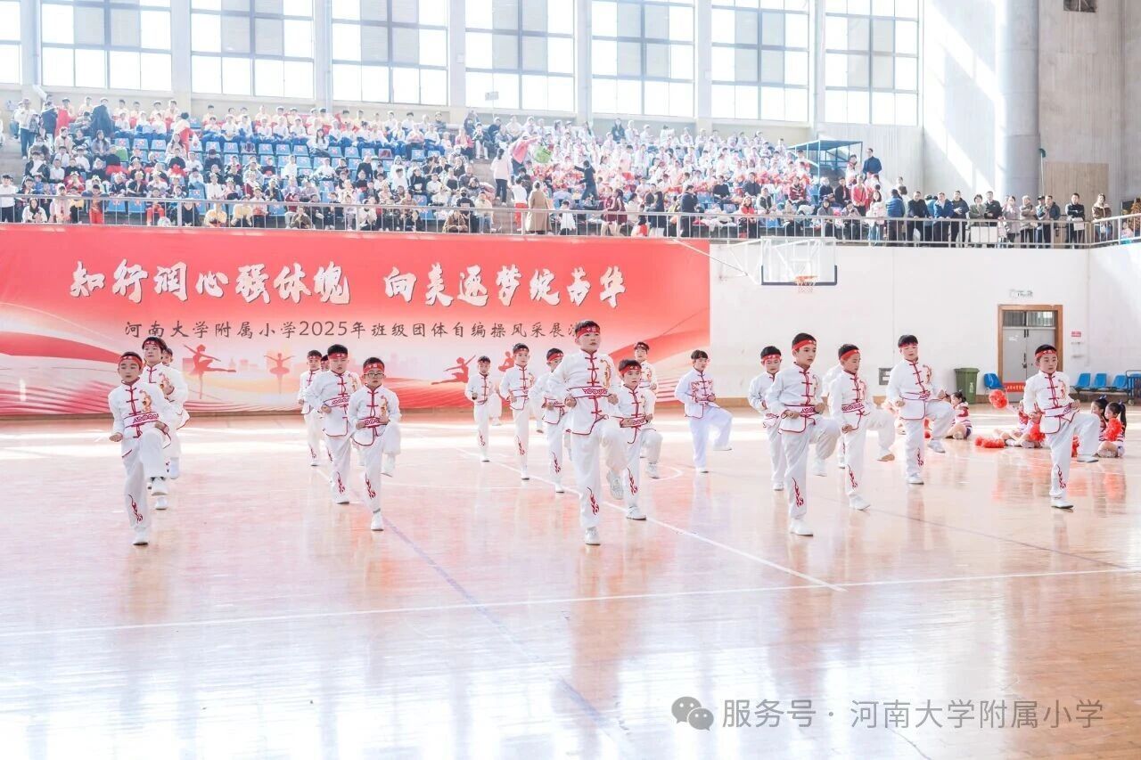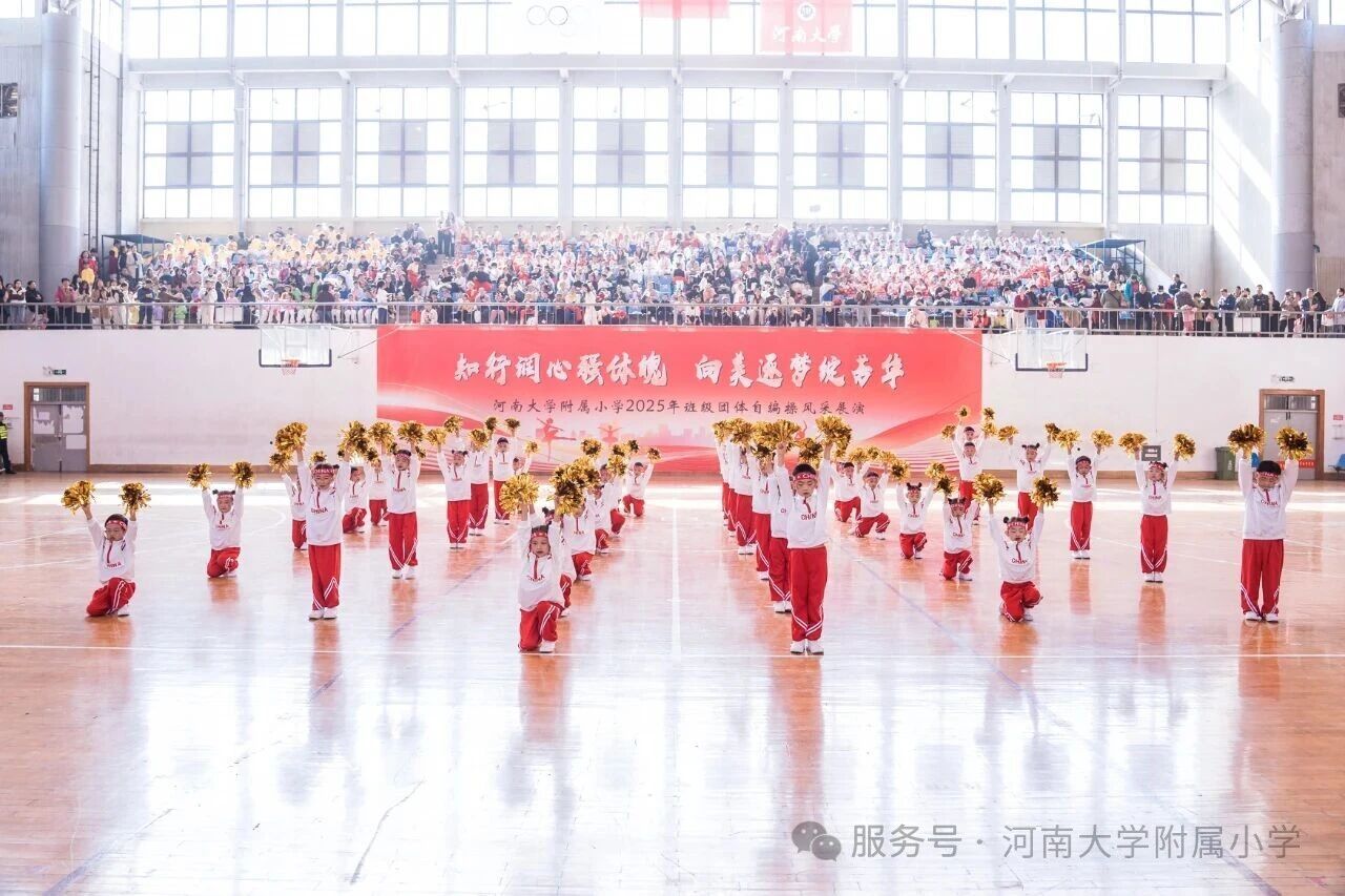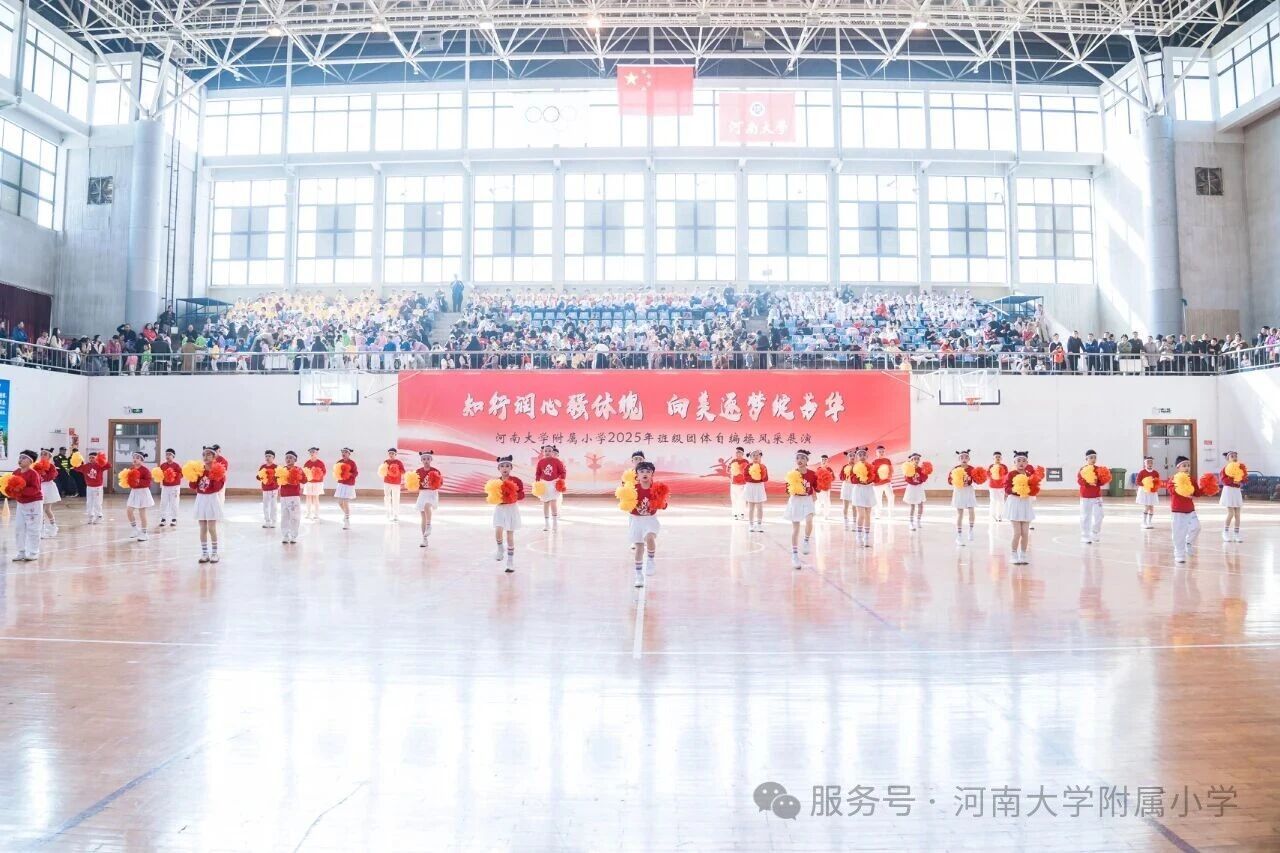 金秋送爽,活力满庭。为深入贯彻国家《关于全面加强和改进新时代学校体育工作的意见》,落实“健康第一” 教育理念,11 月1 日上午,河南大学附属小学以“知行润心 向美而行” 为主题,在河南大学明伦校区体育馆举办2025年第二届班级团体自编操风采展演。全校师生、专业评委及助演单位河南大学幼儿园齐聚,共赴这场体育与艺术交融的少年盛会。