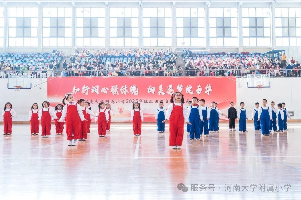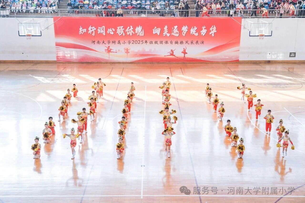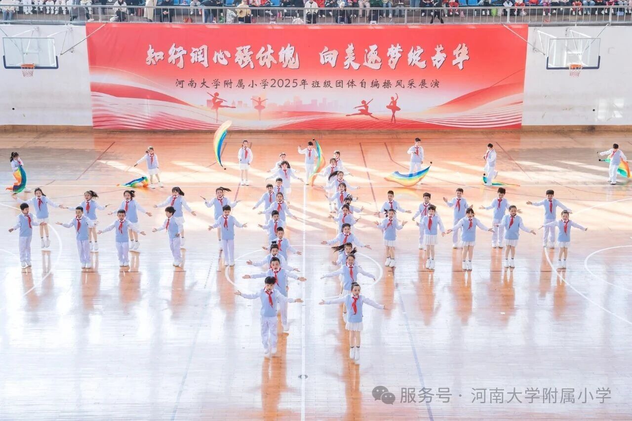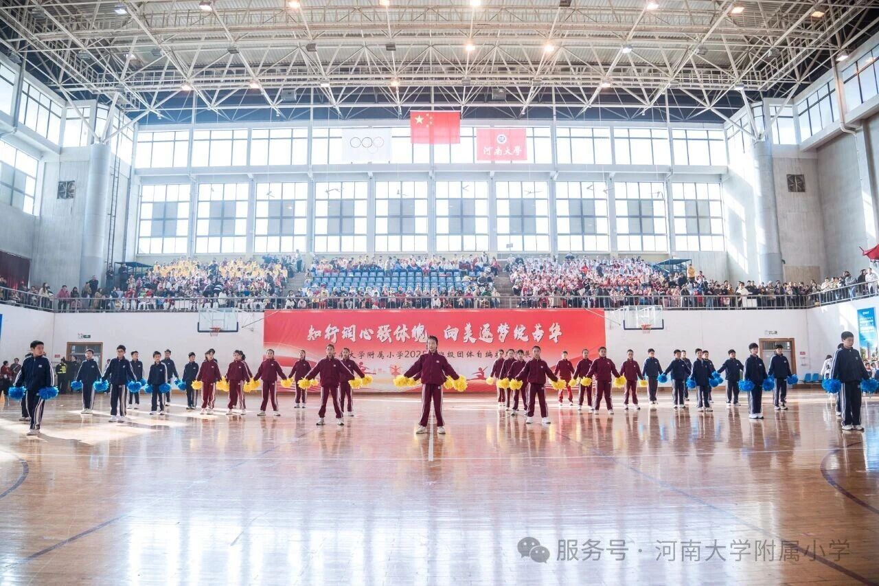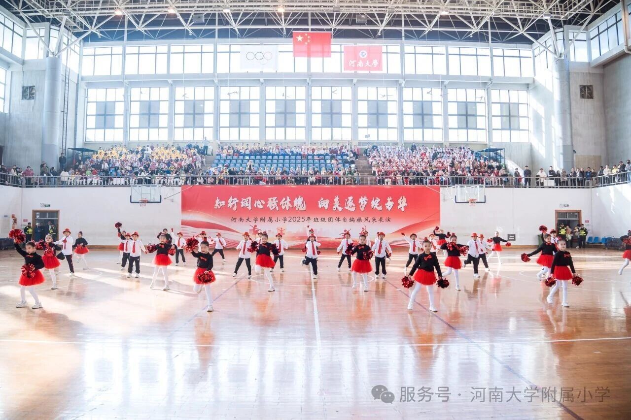 金秋送爽,活力满庭。为深入贯彻国家《关于全面加强和改进新时代学校体育工作的意见》,落实“健康第一” 教育理念,11 月1 日上午,河南大学附属小学以“知行润心 向美而行” 为主题,在河南大学明伦校区体育馆举办2025年第二届班级团体自编操风采展演。全校师生、专业评委及助演单位河南大学幼儿园齐聚,共赴这场体育与艺术交融的少年盛会。