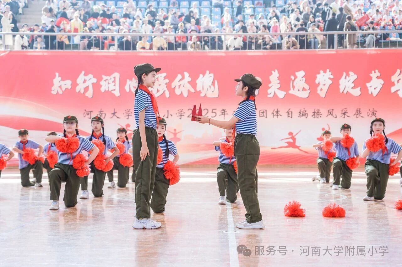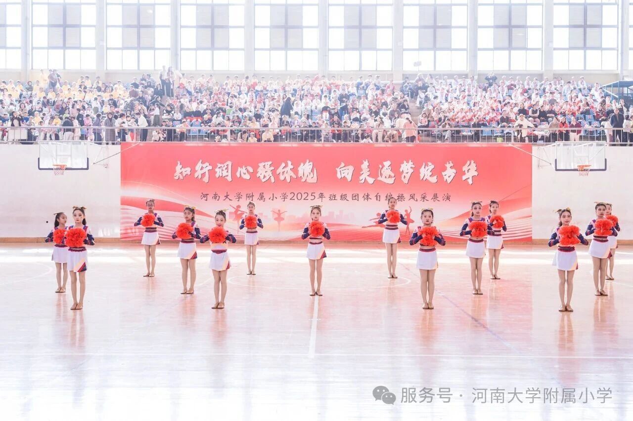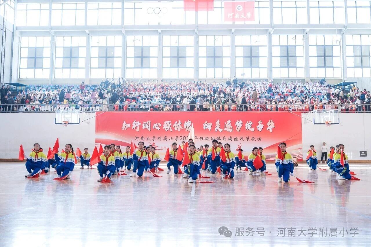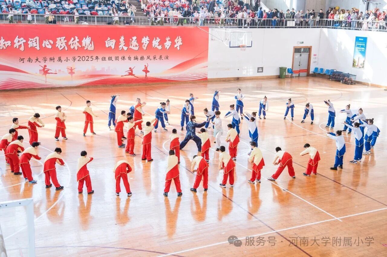 金秋送爽,活力满庭。为深入贯彻国家《关于全面加强和改进新时代学校体育工作的意见》,落实“健康第一” 教育理念,11 月1 日上午,河南大学附属小学以“知行润心 向美而行” 为主题,在河南大学明伦校区体育馆举办2025年第二届班级团体自编操风采展演。全校师生、专业评委及助演单位河南大学幼儿园齐聚,共赴这场体育与艺术交融的少年盛会。
